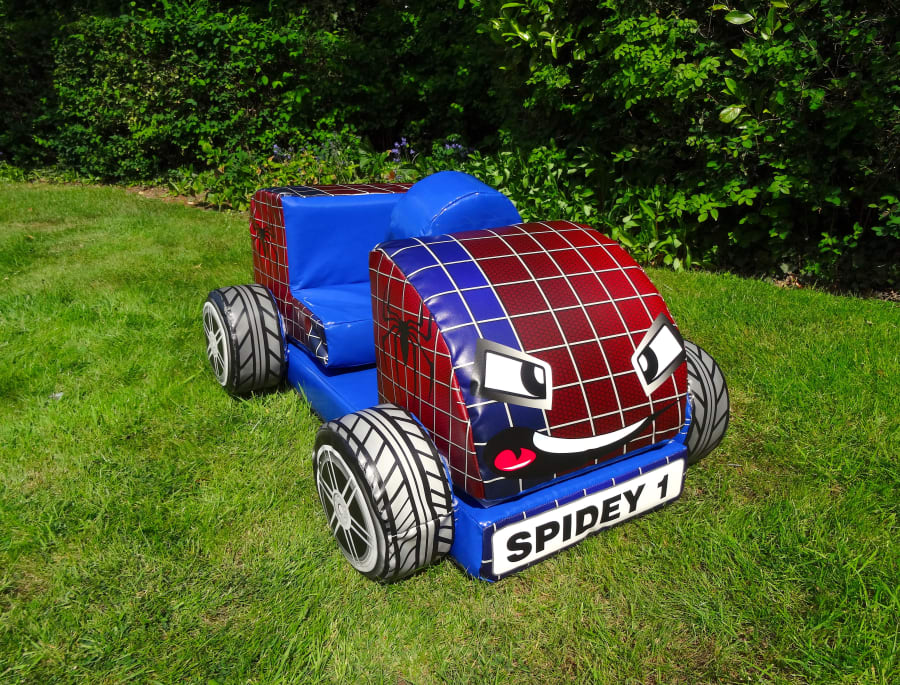 18 piece soft play set, 1 super hero double rocker, and 1 Spiderman car. – ideal for constructive play.