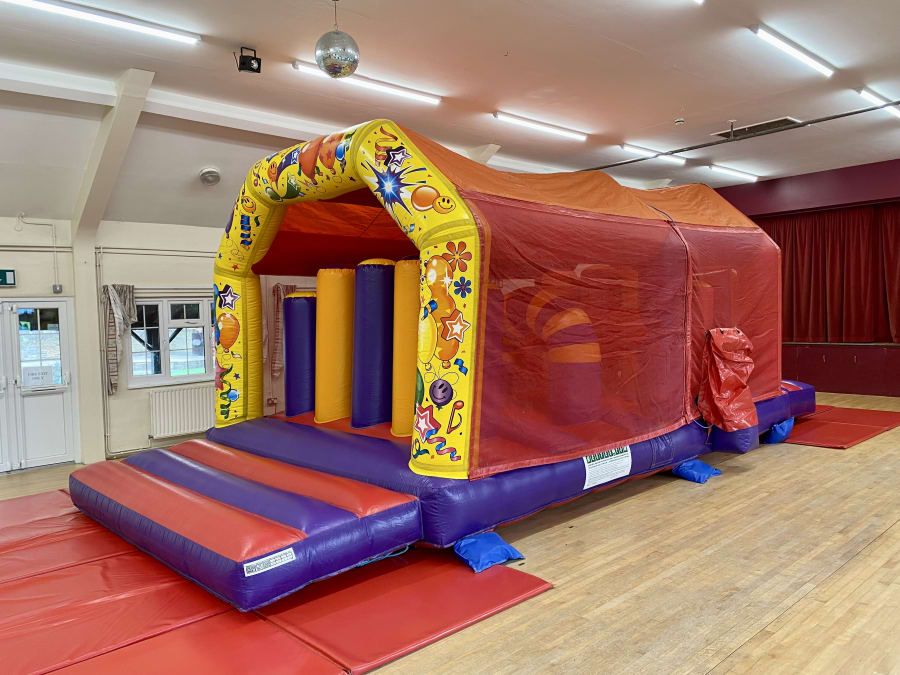 This multi coloured vibrant inflatable is the obstacle section from the 65ft assault course.