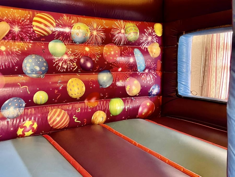This bright and exciting bouncy castle featuring balloons will save the day at any birthday party, school event, or festival.