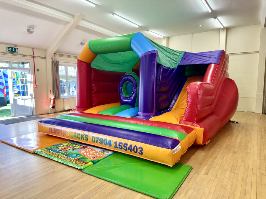 Hire our Rainbow bounce N slide activity unit for a wild party!