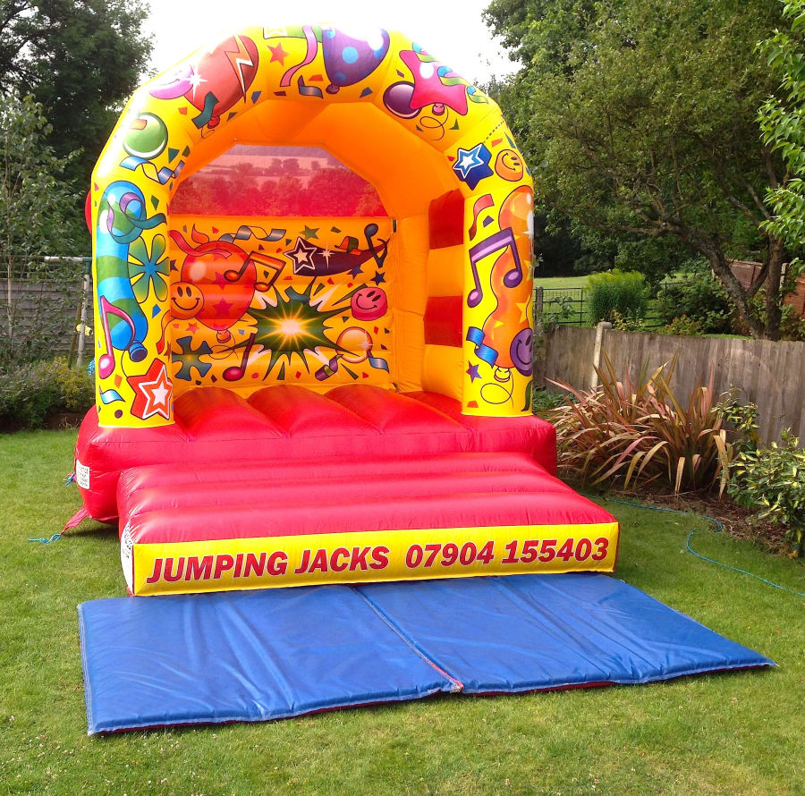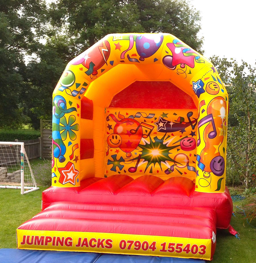 Bring the spirit of carnival to your event with this bright and lively red and yellow bouncy castle. The striking artwork will bring joy and laughter to any party, wedding or fete!