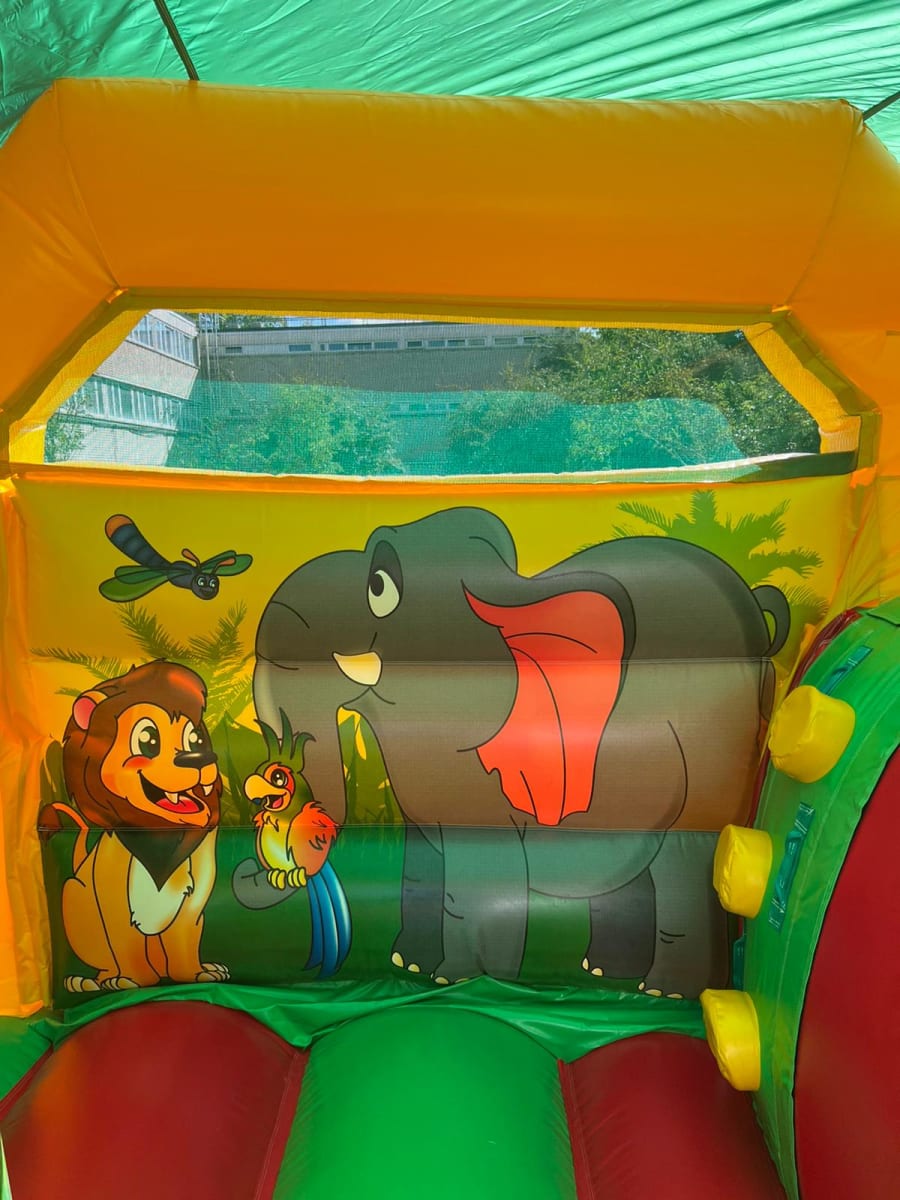 Hire our jungle bounce and slide activity unit for a wild party!