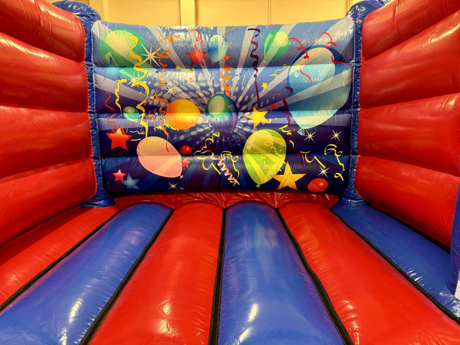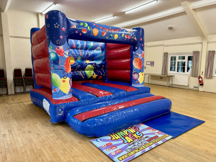 Here is our 12x12 Blue Party H Frame bouncy castle and what a head turner it is.