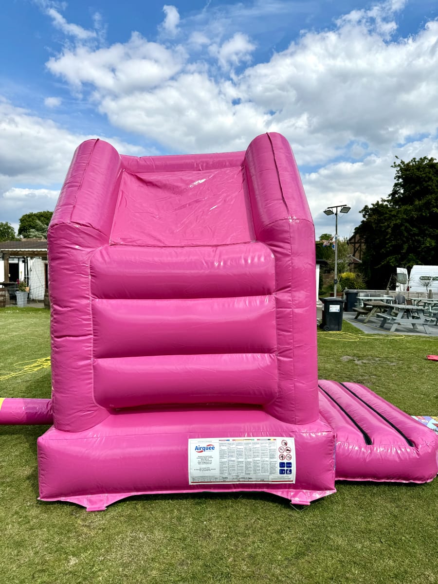 Hire this tots 8x10 Pink bouncy castle for non-stop fun.
