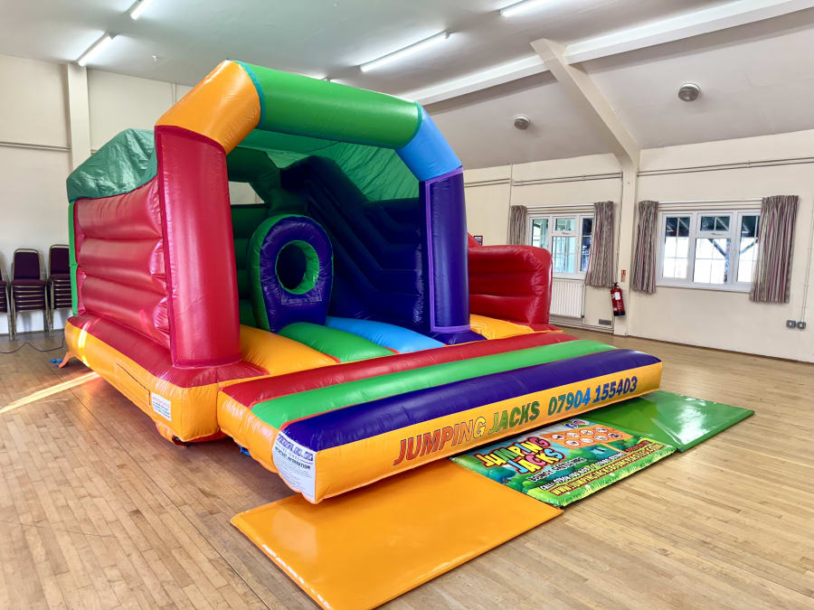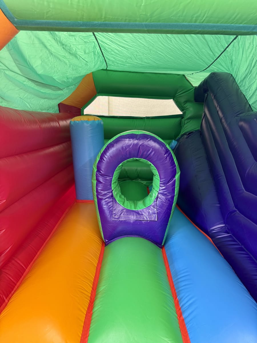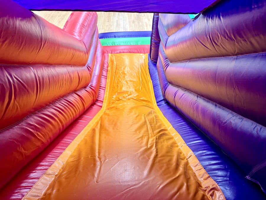Hire our Rainbow bounce N slide activity unit for a wild party!