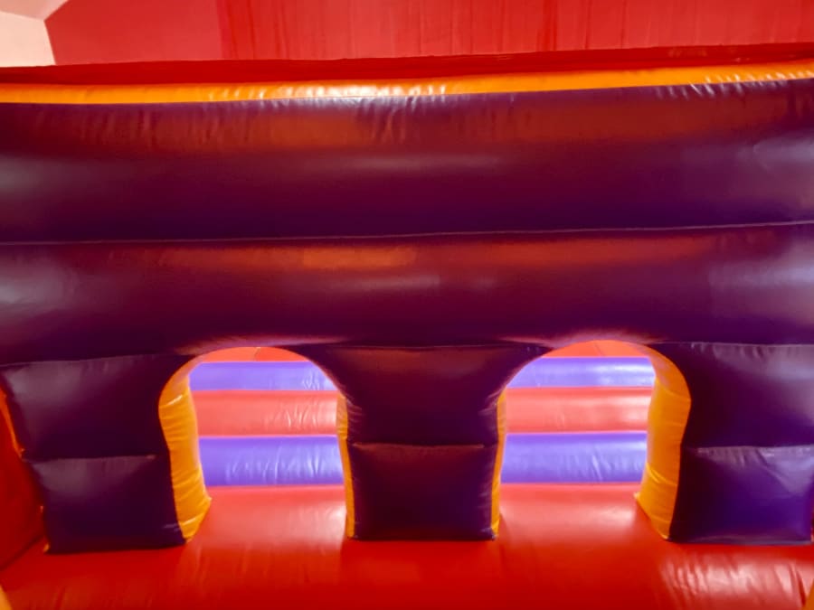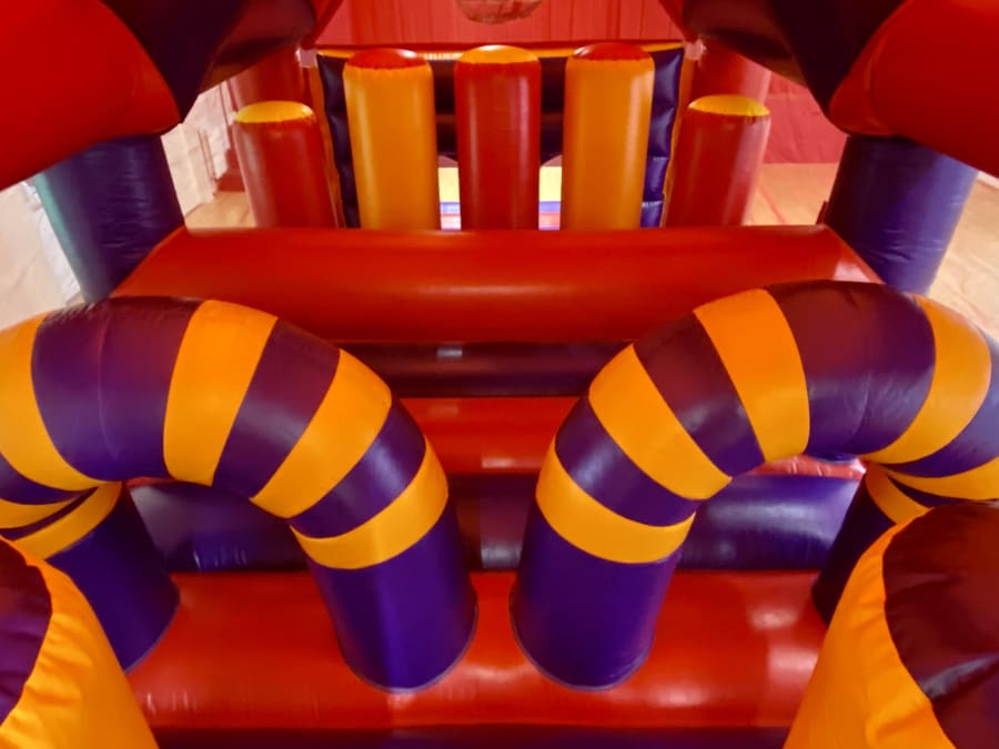 This multi coloured vibrant inflatable is the obstacle section from the 65ft assault course.
