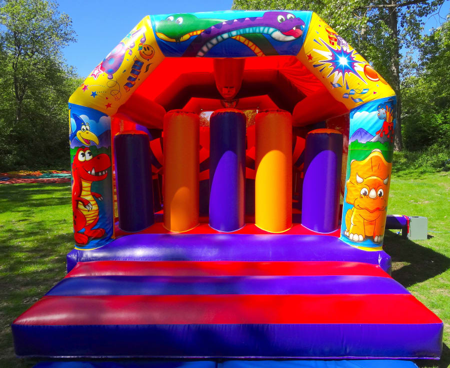 This multi coloured vibrant dinosaur inflatable will be a big success at any birthday party, school event, or festival.