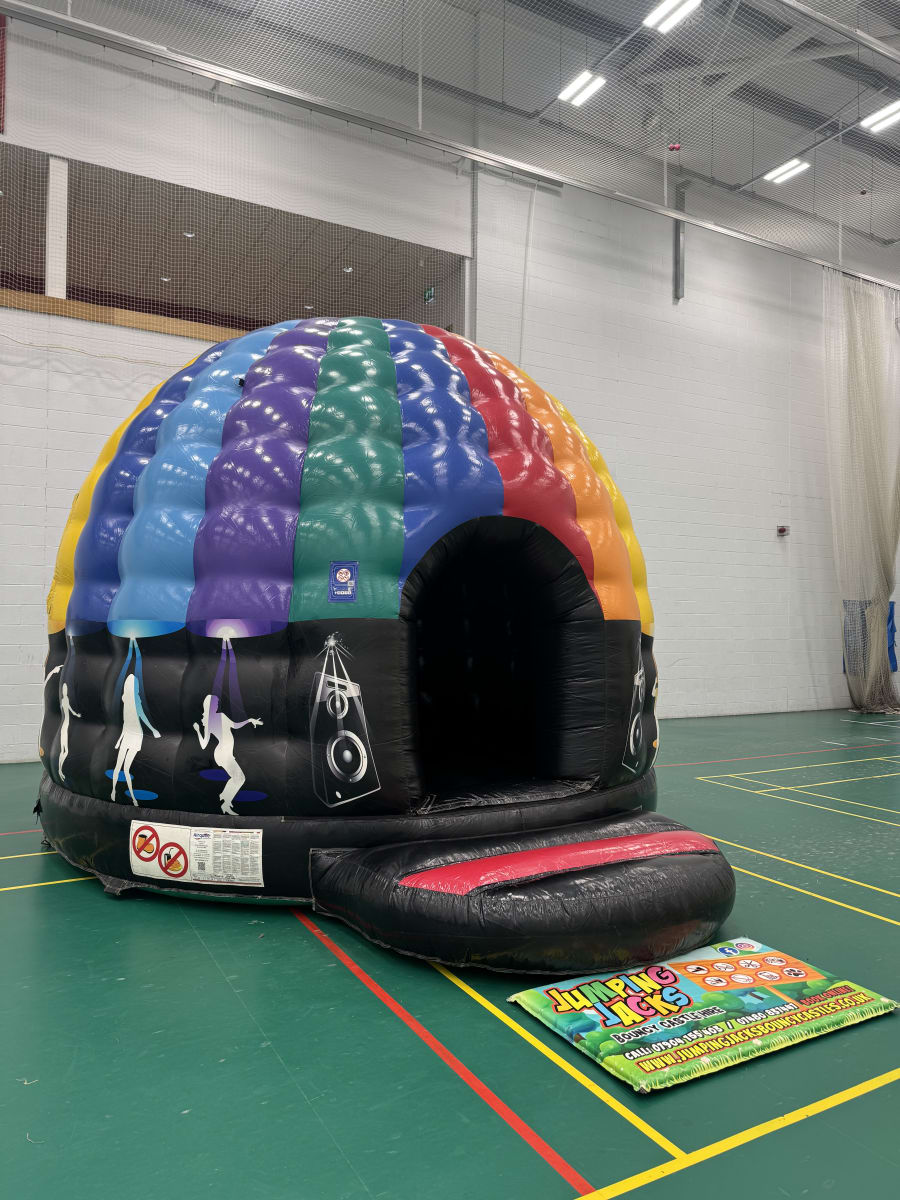 A great feature of this newly designed disco dome bouncy castle is that they have larges netted windows so you can keep an eye out for what is happening inside. Also letting air circulate on hot days.