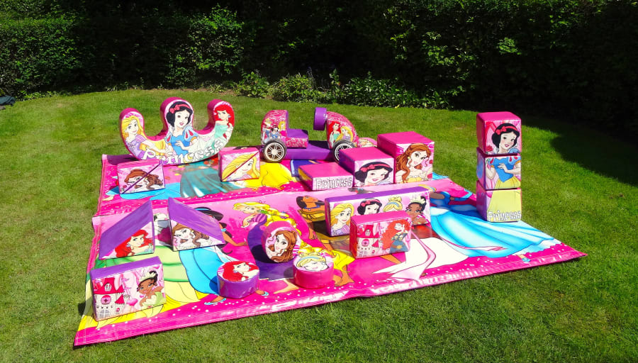 18 piece soft play set, 1 princess double rocker, and 1 princess car – ideal for constructive play.